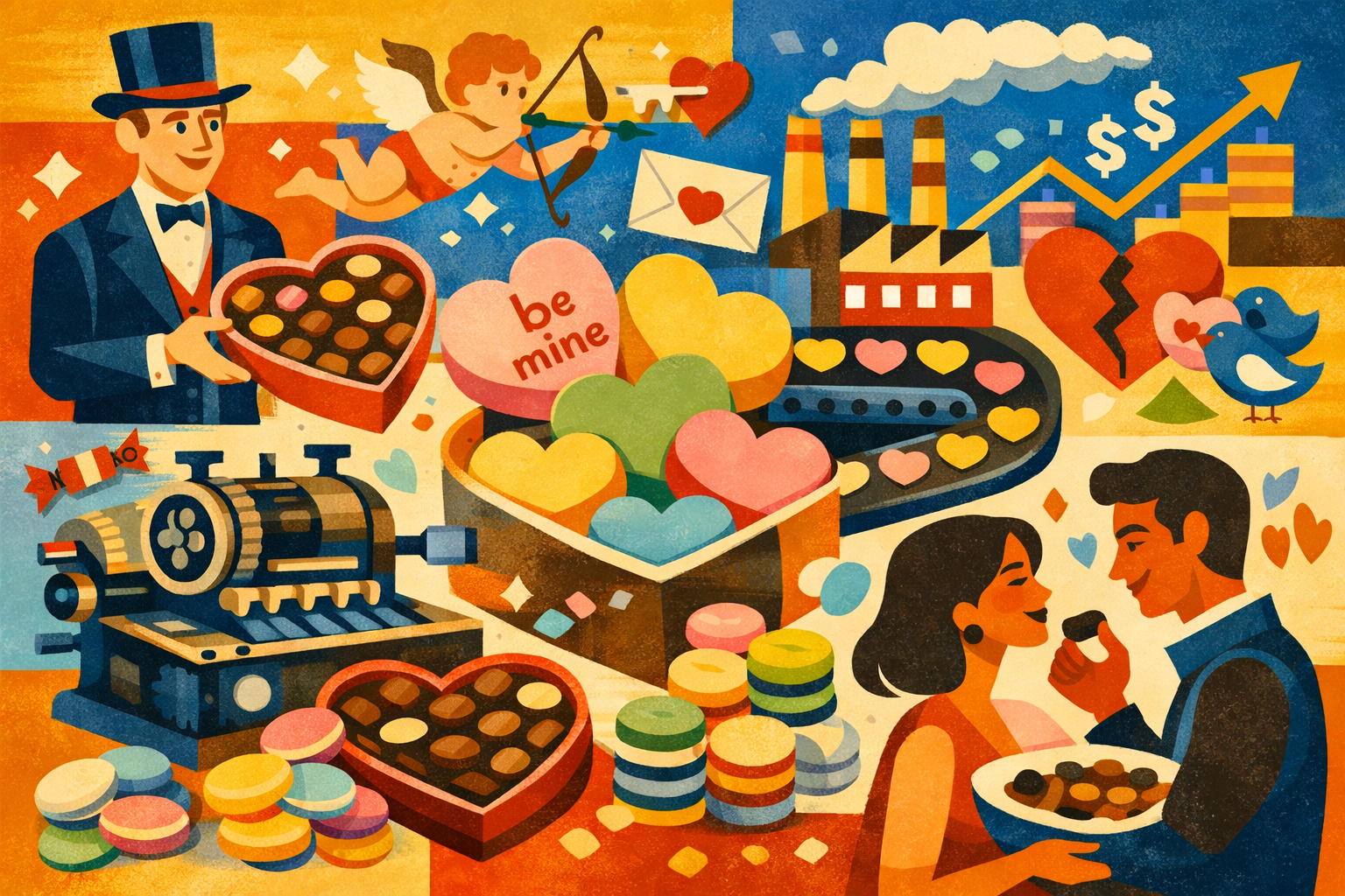 Valentine’s Day candy, especially heart-shaped chocolate boxes and conversation hearts, has a long history and still plays a major role in how people celebrate the holiday.